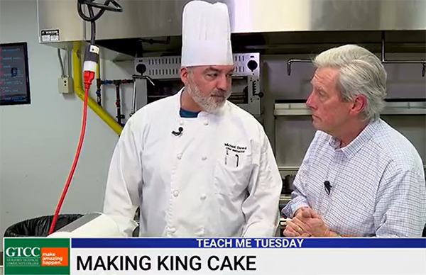 GTCC Chef Mike Dowd created a Mardi Gras classic king cake on WGHP's Teach Me Tuesday segment.