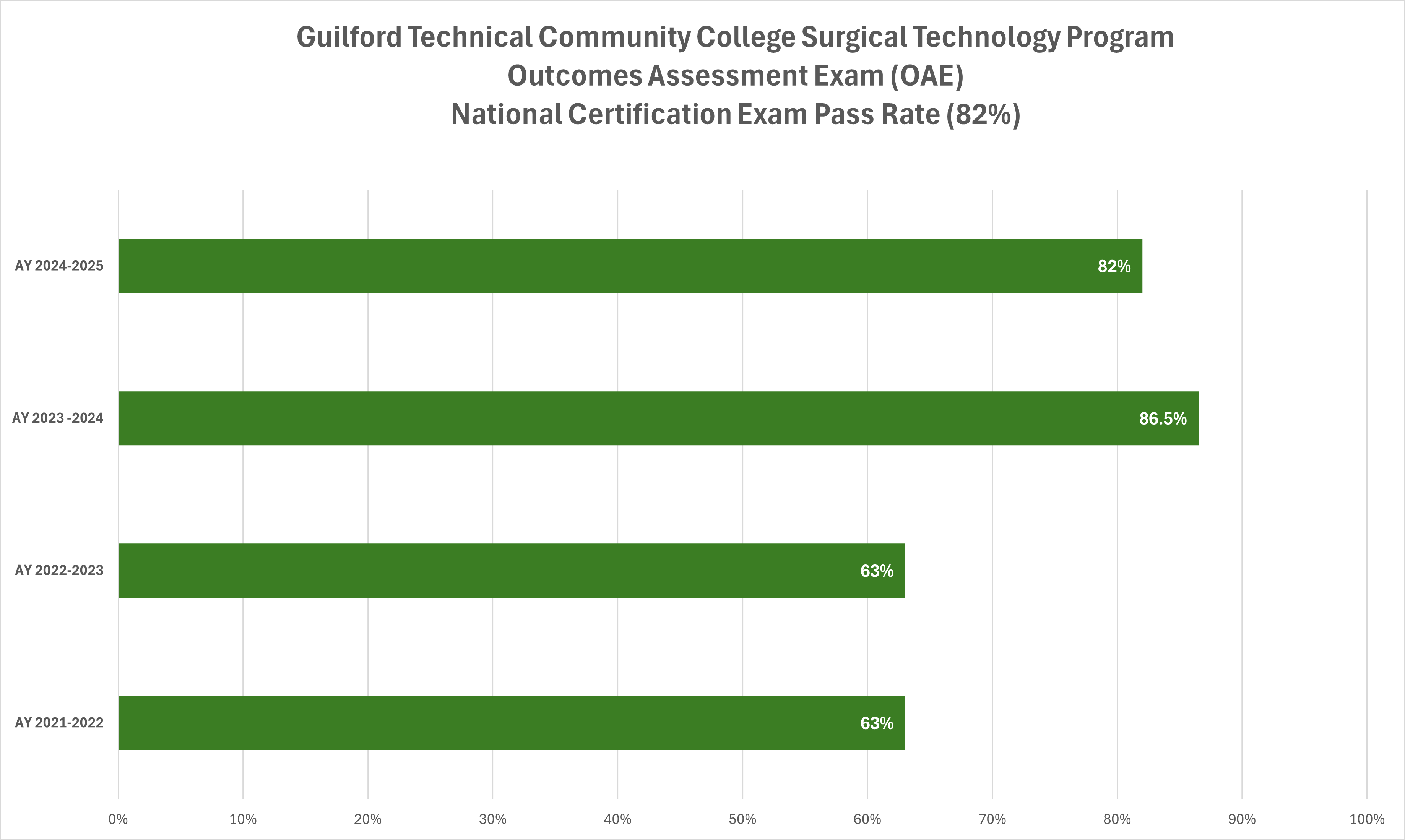 Outcomes Assessment Exam National Certification Exam Pass Rate (CST Exam): Assessment Year 2024-2025: 82%; AY2023-2024: 85.6%; AY 2022-2023: 63%; AY 2021-2022: 63%